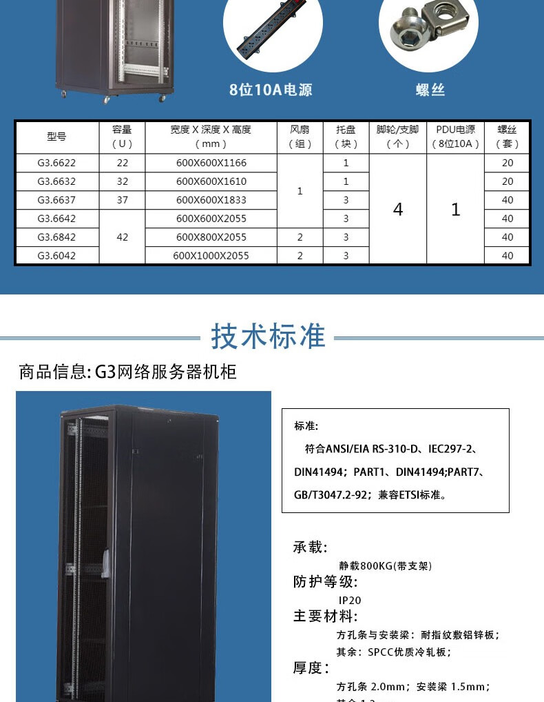 图腾(TOTEN) G36647 网络机柜 47U加厚机柜 交换机机柜 网格门机柜 UPS电源 图腾机柜G36647